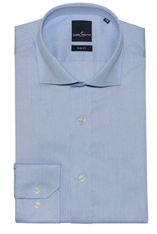 Made from a cotton blend fabric, this slim fit lightweight shirt features a cut away collar, regular cuff and a light blue colour palette.