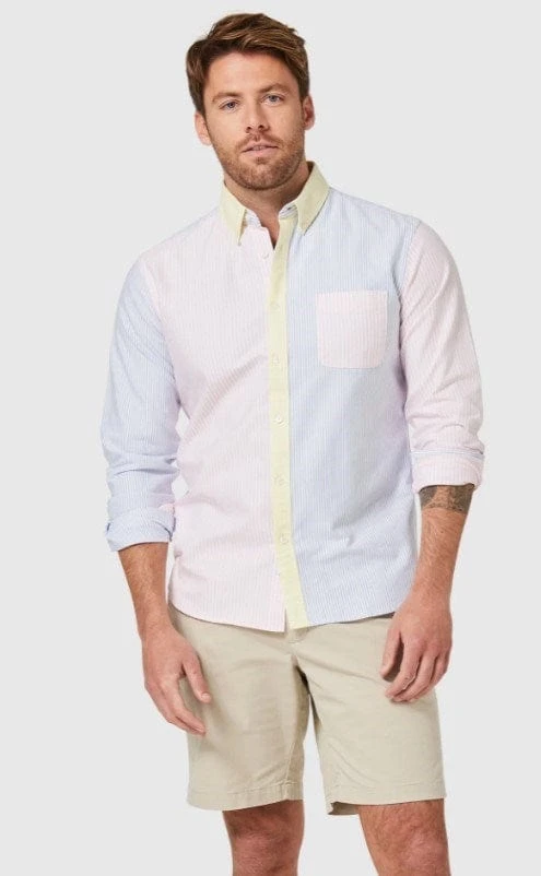 Make a statement in our Ray Long Sleeve Oxford Panel Shirt this spring sesaon. Inspired by fresh, bright days, this pastel shirt features a harmonious blend of pink, yellow and blue stripes all in our timeless cotton oxford fabric.
