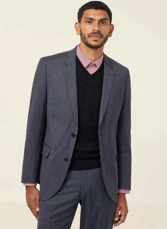 Fashioned in luxurious, wool-rich cloth, our timeless 2 Button Jacket offers instant sophistication. The single-breasted silhouette is fully lined and constructed using traditional tailoring techniques for a refined finish. You’ll appreciate the functional exterior pockets with their smart flap detail, plus the chest pocket, where you can tuck a pen or pocket square. It’s cut from our popular Sharkskin fabric, which combines tones of deep charcoal and black for a richly textured finish. Pair it with the matching Flat Front Pant for razor-sharp style.