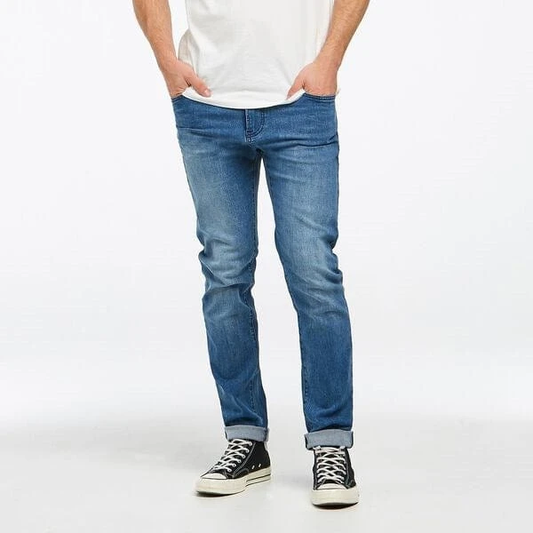 The R2 Slim and Narrow is the Riders go to jean; with a regular rise, slim leg profile and tapered hem. Finished in a classic mid-blue denim was